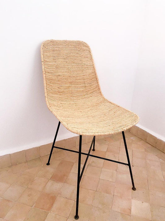 Handmade Wicker Dining Chair – Natural Palm Leaf & Metal Base