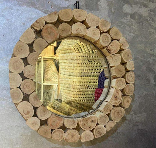 Handcrafted Rustic Wood Mirror – Natural Frame Wall Décor