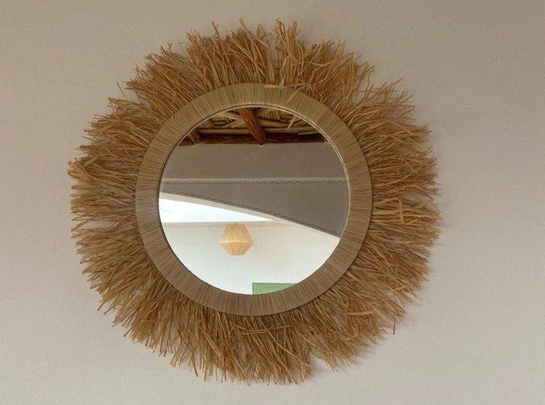 Its natural fiber frame brings warmth, texture, and character to your wall décor. Perfect for bohemian, rustic, Mediterranean, or wabi-sabi interiors, whether in a bedroom, living room, entryway, or bathroom.