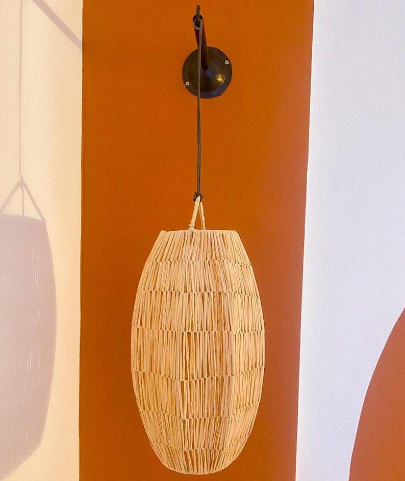 Use with a warm LED bulb and a natural textile cord to highlight its artisanal weaving and enhance the cozy bohemian vibe.